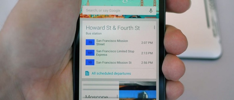 These cards include Weather, Public Transit, Places, Traffic, Flights, Sports, Appointments, Translation, Currency, and Time Back Home. The last item on this list is something you'll have to program, it simply needing to know when you'll want to see a map back home – and it'll need you to mark where your home is, but just once. Appointments are connected to your Google Calendar, Translation and Currency appear when you go to a foreign country, and Sports show the scores of your favorite teams.