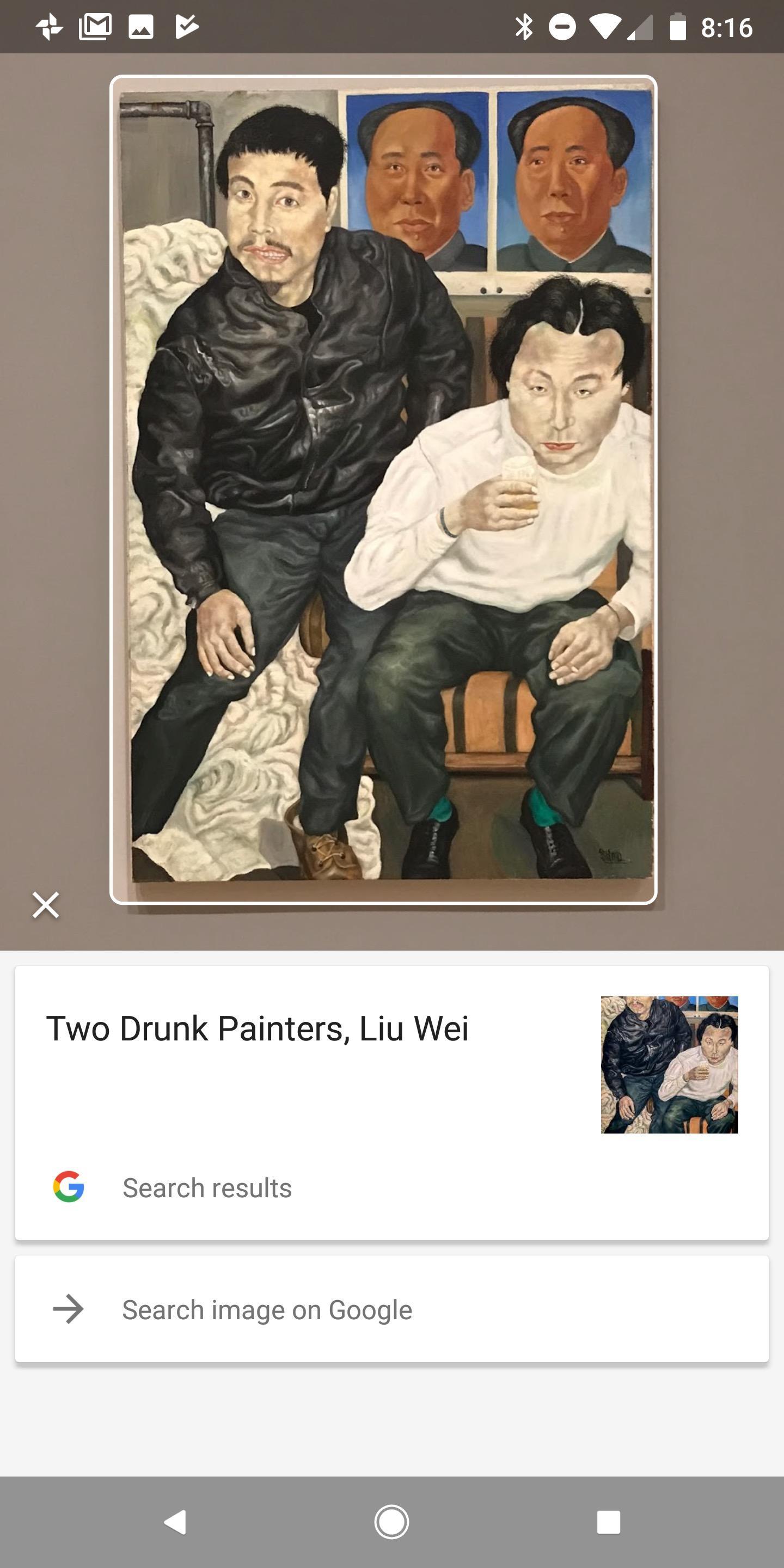 For the moment, it does a reasonably good job spotting what's in your photos. Identifying the Golden Gate Bridge is table-stakes, but Lens was able to recognize lesser-known public buildings too. It didn't get tricked into thinking a Subaru BRZ was a Toyota 86, and it recognized Liu Wei's "Two Drunk Painters" from a recent SFMOMA exhibition.