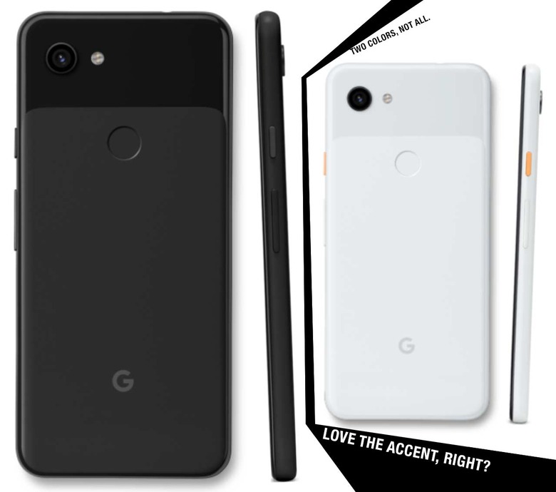 There'll be three colors available for the 3a phone lineup, including black, white, and purple. You'll notice a lovely little salmon-like color accent on the power button of the Pixel 3a in white. All versions come with free Google Photos storage forever – unlike what previous Google Pixel devices received. Look at the Pixel 3 fine print feature published last year to compare.