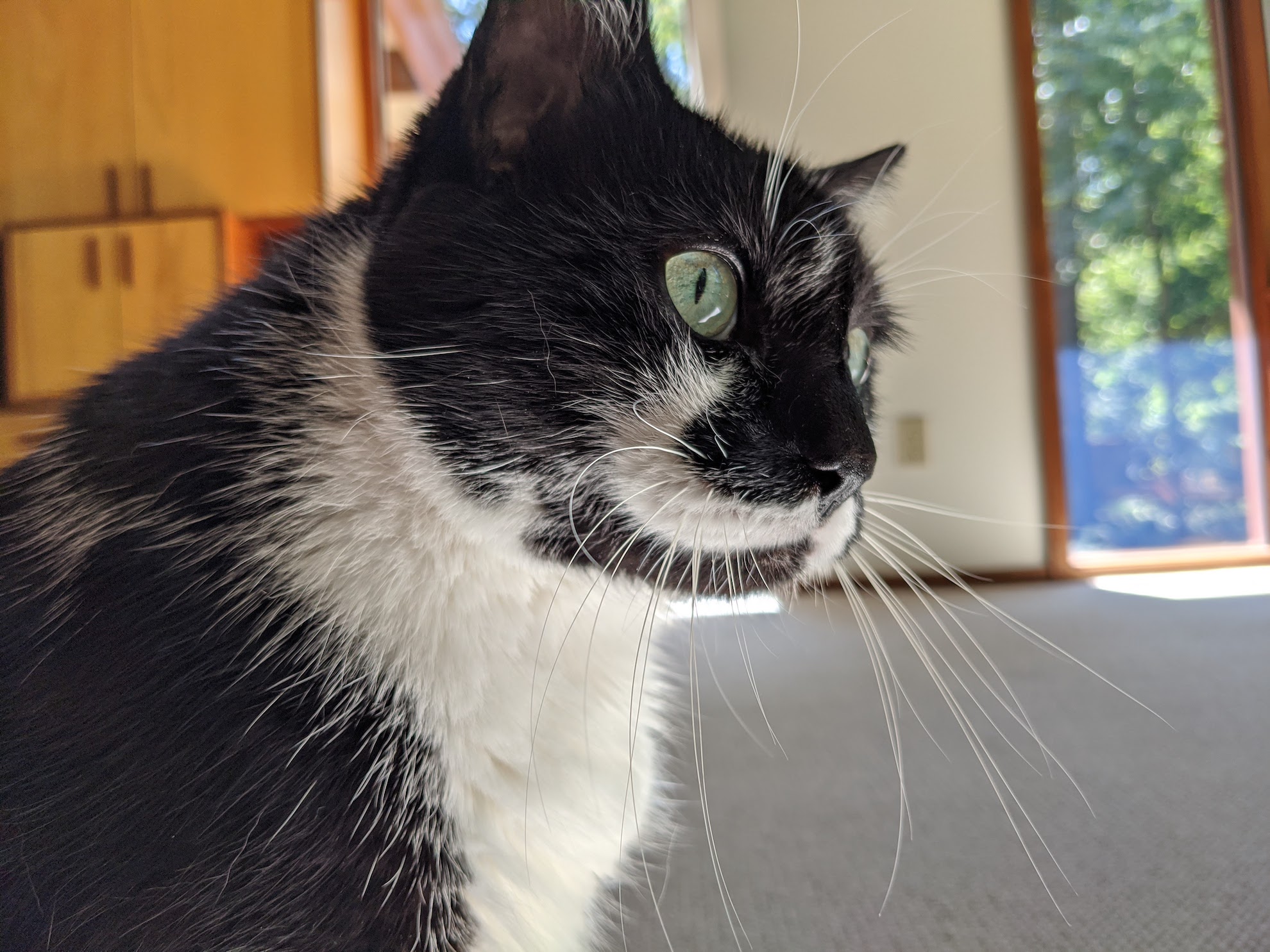 On the front, a surreptitious hole in the OLED accommodates an 8-megapixel selfie camera. It's fixed focus and f/2.0 aperture, and has an 84-degree field of view. It's perfectly fine, but struggles more than the rear camera does when faced with software-enabled Portrait mode shots.