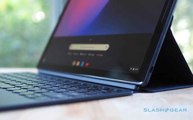 With its midnight blue anodized aluminum casing, curved edges, and rounded 2.5D Gorilla Glass 5 cover glass, the Pixel Slate is a handsome tablet. It's also thin, too, at just 7mm thick, though there's no flex when you hold it. The 12.3-inch "Molecular Display" is a delicious 3000 x 2000 resolution LCD panel, with bright and bold colors, though its bezels look positively thick compared to those of the latest iPad Pro.