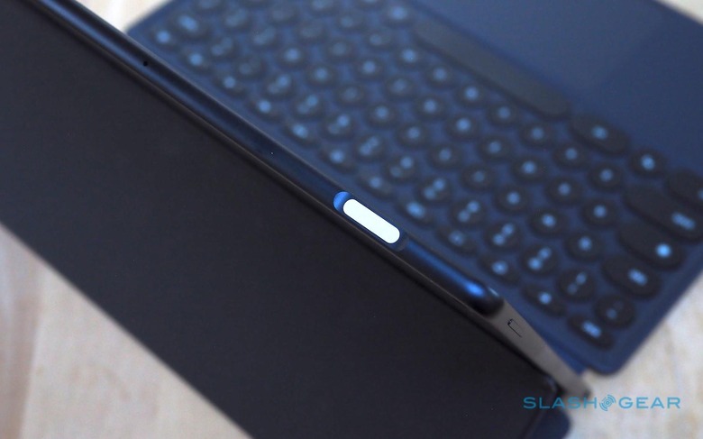 The 16mm diameter circular keys have a healthy 1.2mm of travel, and they're backlit which is useful. Since the keyboard uses pogo-pins for both power and data, there's no charging. Its magnetic stand can pose the tablet at any angle, unlike the two fixed positions of the iPad Pro's Smart Keyboard.