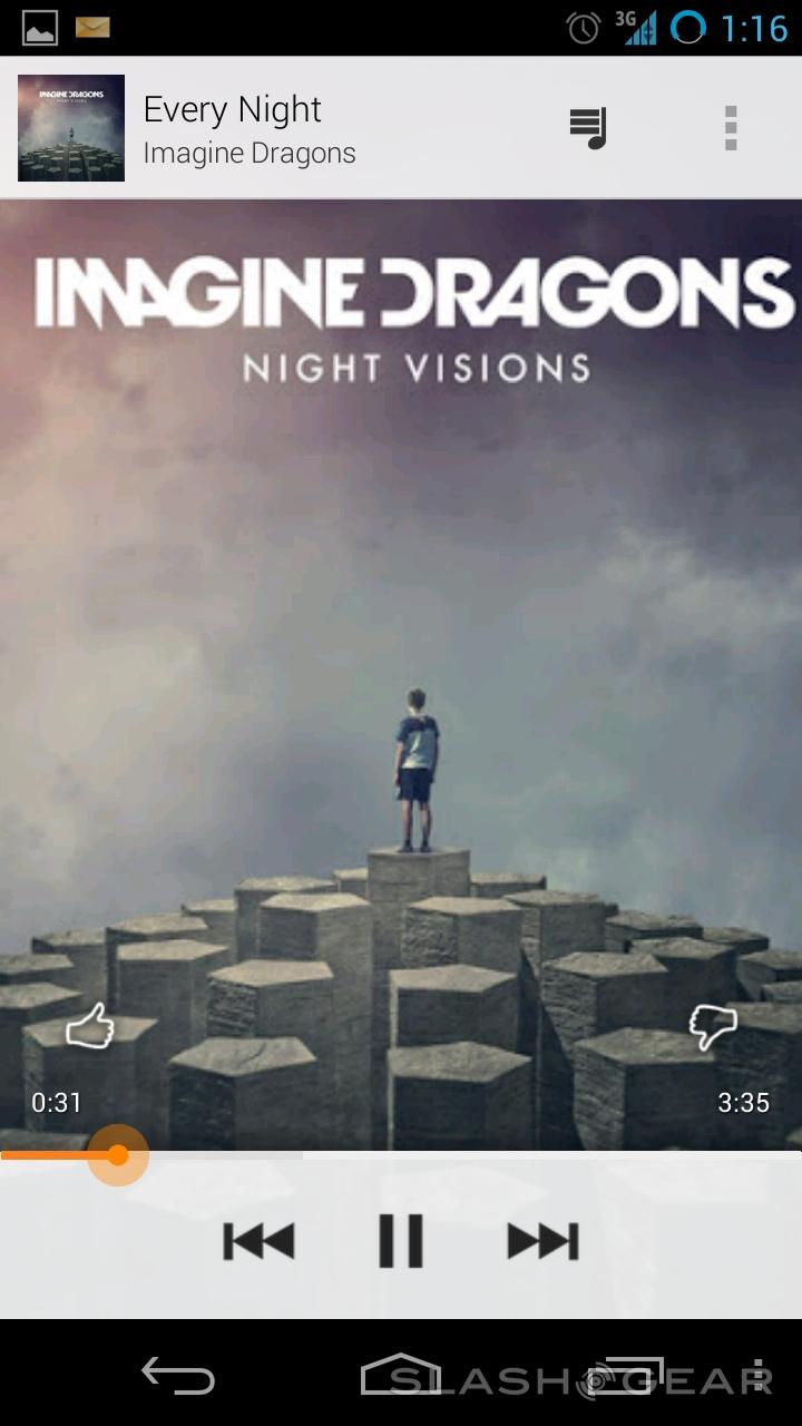 As for the user interface, nothing hasn't changed too much. You get the typical Google look with an orange and white color theme. Frankly, I'm not a huge fan of the squared-off boxes and shapes that many Android apps have, but it certainly doesn't hinder the music listening experience at all, and it's something that I can easily get accustomed to.