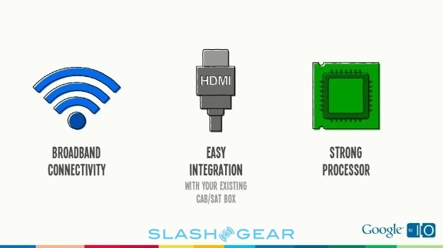 Google TV is based on Android, with the Chrome browser and full Flash 10.1 support, and you'll have Android Market access for things like Pandora's internet radio app. Google are also opening up the APIs for Google TV so that developers will be able to create webapps and standalone software for the system – such as YouTube Lean Back – as well as eventually open-sourcing the technology. Since Android 2.2 Froyo adds remote app installation users will be able to install new apps to their Google TV box from their desktop computer. Still, you won't be able to access the Android Market on Google TV until early 2011, and it won't be open-source until late 2011. You can sign up for more details at google.com/tv.