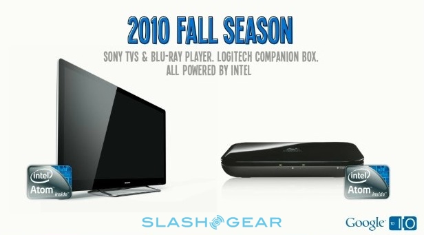 As for the hardware, Google TV sits in-between your existing HDTV and set-top box, with HDMI connections and an IR blaster to control the other hardware. It'll be 3D graphics capable, together with surround sound, and there'll be various input peripherals including remotes, QWERTY keyboards and a new Android app that connects over WiFi and supports voice searches. It's possible to have more than one remote control – including an Android device – connected to a Google TV box at any one time, and you can share content that you've browsed to on the phone straight to the HDTV. Sony and Logitech have signed up to provide Google TV hardware – including televisions, Blu-ray players and companion boxes – which will go on sale this fall at Best Buy. Intel are providing the Atom processors that will power the whole system, and Google have also signed a partnership with Dish Network.