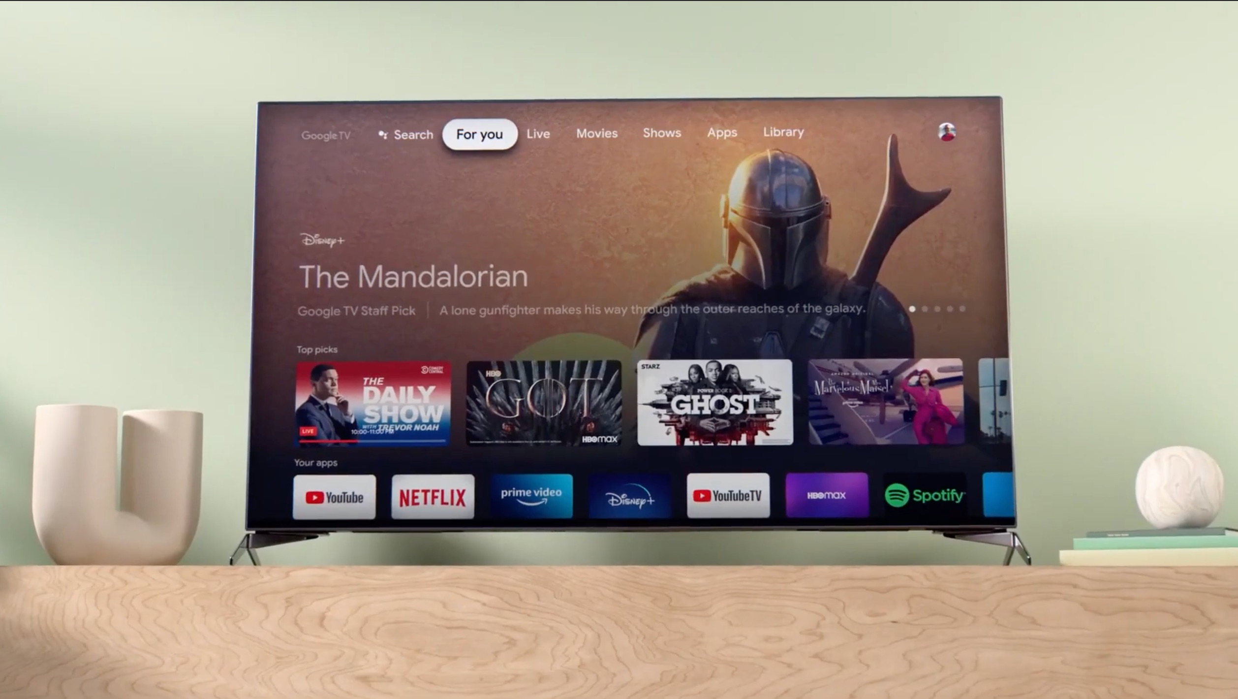 At the top of the screen you'll find Search, For you, Live, Movies, Shows, Apps, and Library. This experience takes more of a guided approach to smart TV functionality, where Android TV took a sort of backseat approach. Google wants to be a part of the party.