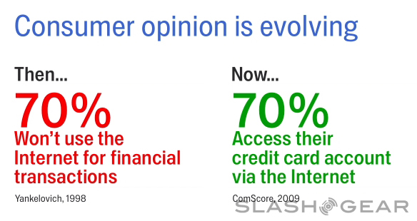 Every retail brand, they've noted, has come online, where in 1998 70% of consumers wouldn't think of buying things online, 70% do it all the time now. Regardless of this, Google's found that 92% of shopping is still offline, therefor a new era of commerce is coming up. Where before we were using cards to swipe, now we're using cards to tap.