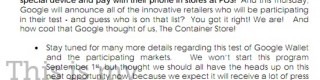 The text you see above comes from The Container Store, they sort of alluding to the idea that they're amongst more than just themselves in a group of partners all taking part of this announcement. The name of Google's initiative definitely appears to be "Google Wallet," a rather snappy name if I do say so myself, and the date September 1st has been tossed out. That might be a date for Google Wallet or it might be a date regarding something inside The Container Store.