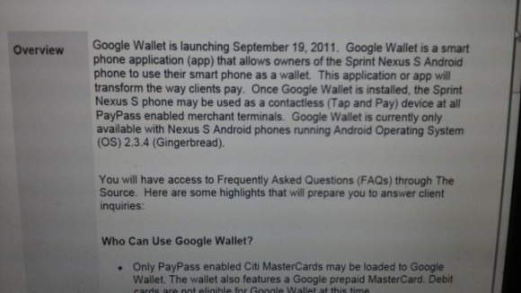 However, it's unclear if the CDMA handset will be the only device to support Google Wallet at the service's launch. Previously, Google has promised that other Android devices will gain access to the functionality by using NFC stickers, though there's no mention of that option in the leaked memo.