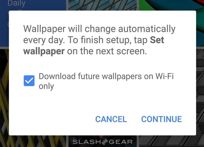 Inside of the app's own folders, selecting a standard placement is one of two options. The other is "Daily Wallpaper" which switches wallpapers every new day. The Wallpaper app will change this image every day, and new images will download on auto.