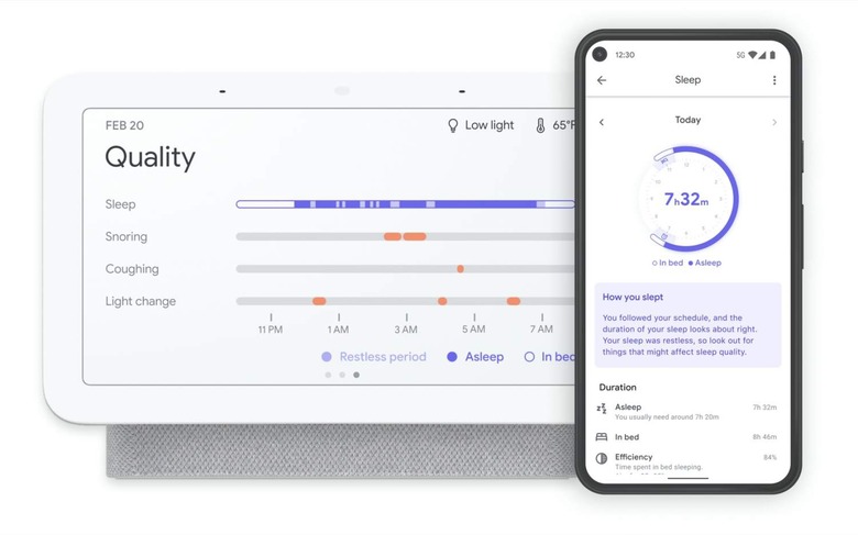The result is a sleep report presented in the morning, which can show duration of sleep, consistency of the sleep schedule, how restful the night was, and how often you woke up. Sleep Sensing can also identify coughs and snores, and compare that with how disturbed your night was. If you're coughing or snorting more frequently, that can be flagged too, and data is shared with the Google Fit app for longer-term monitoring.
