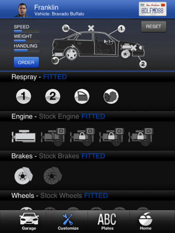 This app allows you to play with Chop the Dog like a Tomagotchi pet, feeding and caring for him while you're away from the computer. It allows you to open up your collection of license plates for your custom vehicles and change what they say – in a very basic sense. It allows you to customize the rest of your "ideal" vehicle too, while you're at it – you certainly don't want to go out with only the cruddiest of stolen rides, after all.