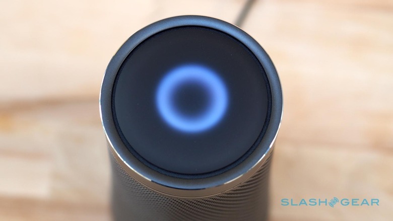The top doubles as a touch panel and an LED array. You can tap to stop or respond to whatever is currently happening – answer or hang up on a call, pause music, or silence an alarm or timer – or long-tap to bypass the "Hey Cortana" trigger phrase or reject an incoming call. The LEDs spin in a circular pattern when Cortana is listening, as well as showing volume level as you turn the dial; it's a fairly subtle glow, and the low-profile panel means it can be hard to see from across the room.