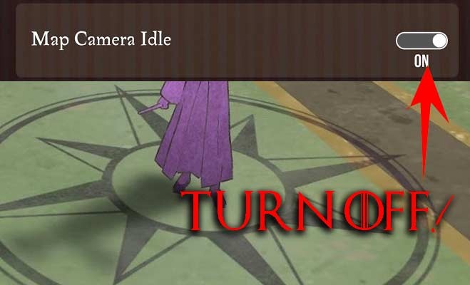 This is odd! Take note – the setting might actually be BACKWARD in the first build. One would expect that when Camera Idle were ON, the map would sit still when not actively turned on purpose. But when the switch is ON, the map does NOT sit idle, it turns whatever direction you're facing.