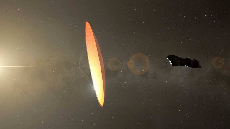 Loeb believes it was being pushed by force besides the Sun's gravity alone. Loeb and colleagues looked at numbers having do with the shape and size of the object and concluded that it wasn't cigar-shaped but possibly a disk less than a millimeter thick with sail-like proportions. If it was a solar sail, which would account for his acceleration as it moved away from the sun. Not all scientists agree with this theory and will likely never know exactly what Oumuamua was.