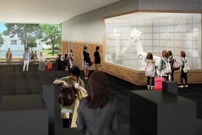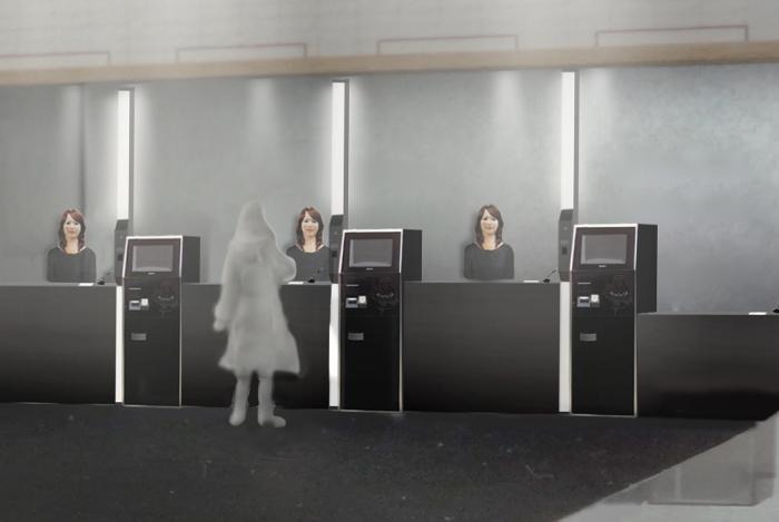 Above you'll see "front correspondence with humanoid robots" – Actroids – in place. Image courtesy of the future Henn na Hotel.