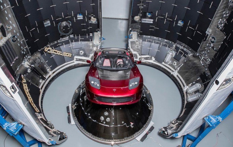Earlier this month, Elon Musk teased that the upcoming first launch of SpaceX's Falcon Heavy rocket would feature a test payload that includes his own Tesla. Now he's back with the proof, sharing several photos on Instagram of the car being prepped and loaded into the payload container that will sit atop the rocket. Musk, the CEO of both Tesla and SpaceX, has previously said they wanted to come up with something really silly for the first Falcon Heavy launch, and it appears they've met the challenge.