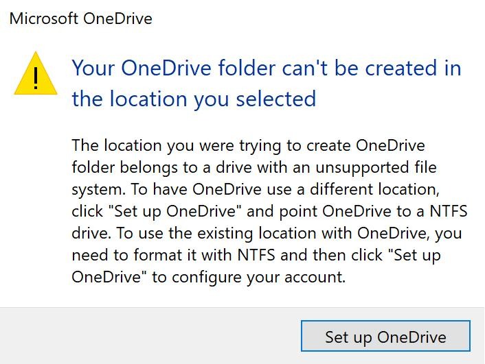 Microsoft has removed that choice for OneDrive users and did so in a very disrespecting way. Users who have set up OneDrive to sync on a storage that doesn't use NTFS have suddenly found themselves unable to access their OneDrive there. And those just starting to link OneDrive to such a type of storage, like an SD card, will be prevented from doing so.
