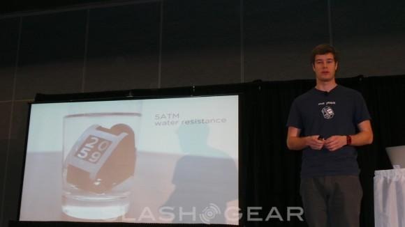 It's actually water-resistant to 5ATM, which is enough for a little swimming though not diving. Whether you'd actually have your smartphone nearby – Pebble hooks up via Bluetooth to pull over notifications – is questionable, however.