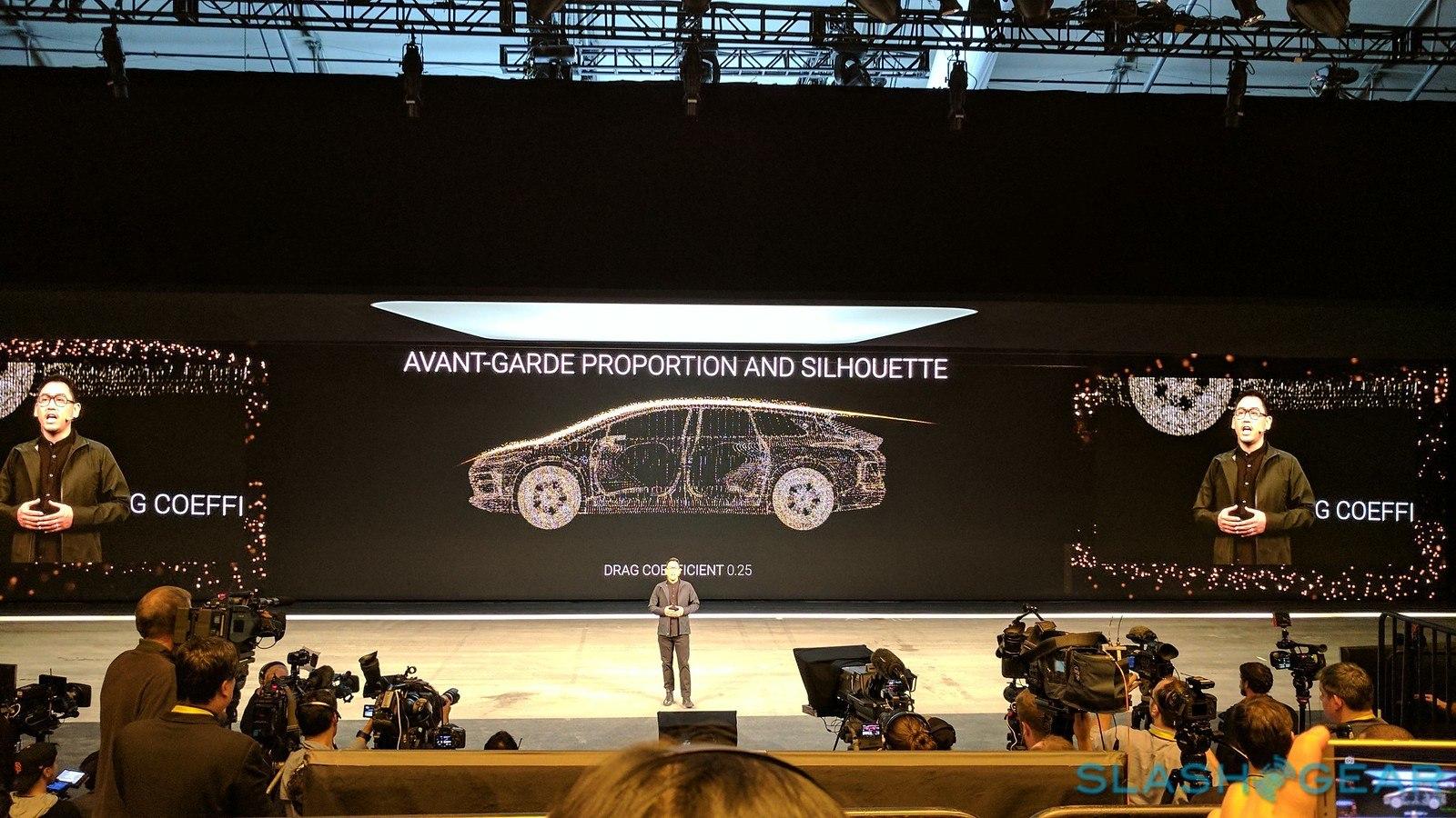 Design is the fourth and final component of Faraday's FF 91 ecosystem. VP of Design Richard Kim took the stage to briefly discuss the design philosophy behind the FF 91 before the final unveiling, focusing first on the drag coefficient of the car. This is important, because as Kim says, it helps increase range, and the FF 91's "avant-garde proportion and silhouette," achieves a drag coefficient of 0.25.