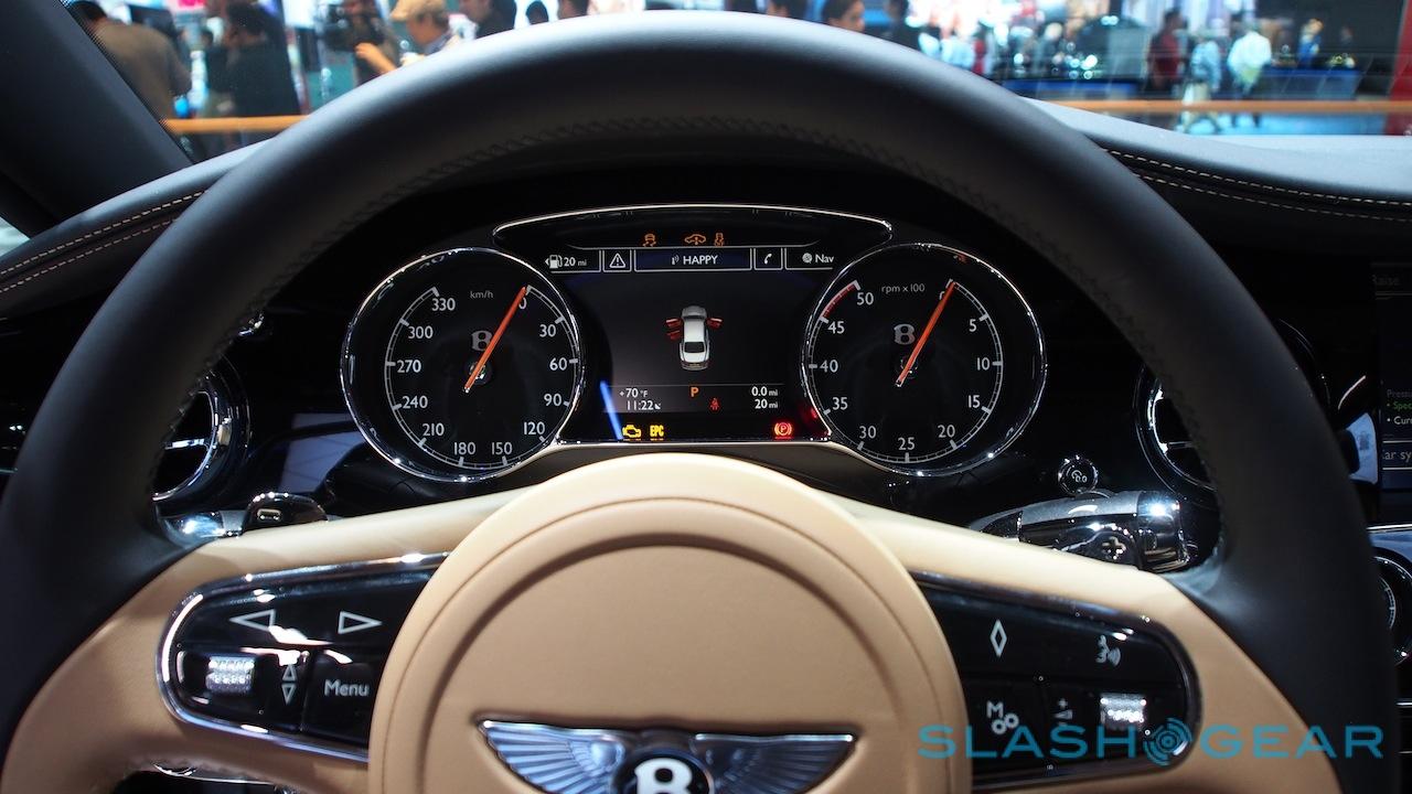 As well as the usual wood veneers, there's optional carbon fiber trim, while the analog speedo and tach counter are inverted – a hint of the classic Bentley grand tourers coming through – and flank a large LCD. A second screen flips into view in the center console when you hit the engine start button.