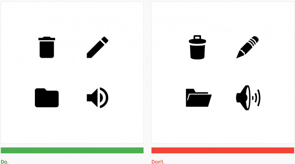 Google suggests developers use their icons in all places – and suggest above all else that they do not mix and match. It's about consistency, here, people!