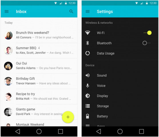 Color Themes are also part of Google's suggestion collection for Material and Android L. The two main themes are Light and Dark, both shown here: