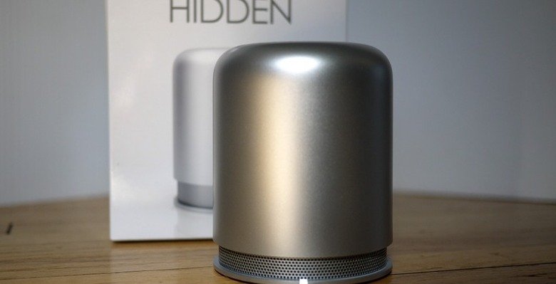 You can use this device's Bluetooth connection as we do in the demo hands-on video above, or you can use the built-in FM radio (along with included plug-in antenna if you wish). You can also connect in a more traditional hard manner with the included 3.5mm speaker cord to whatever device you've got that'll blast out sound. The final sound quality is essentially the same be it through the audio jack or via Bluetooth, and it's certainly not perfect – but it can get loud enough to fill a generous sized apartment room without a problem. While its not for audiophiles, HiddenRadio is going to sound more than high quality enough for the general public.