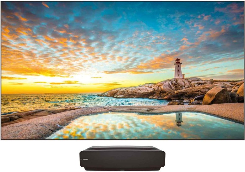 Hisense says the projector's image exceeds the Rec. 709 standard when it comes to the color range, plus it covers 83-percent of DCI-P3. Beyond that, the home cinema device supports HDR10 and HLG, both DMD and MEMC technology that smooths and enhances motion, and built-in 30-watt speakers with dbx-tv.