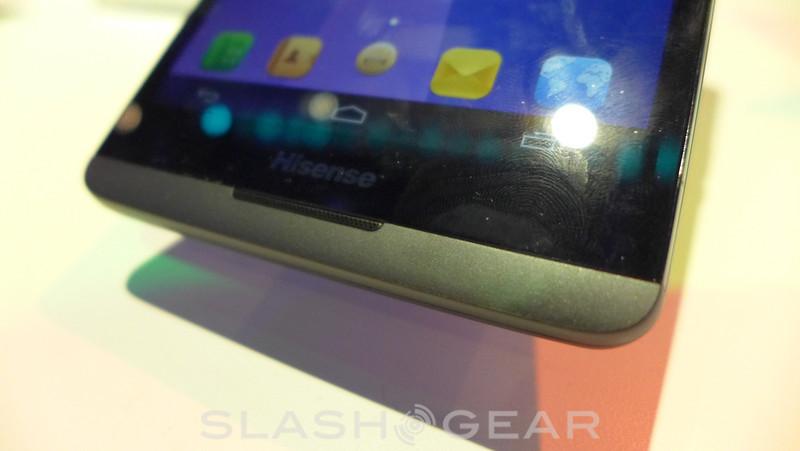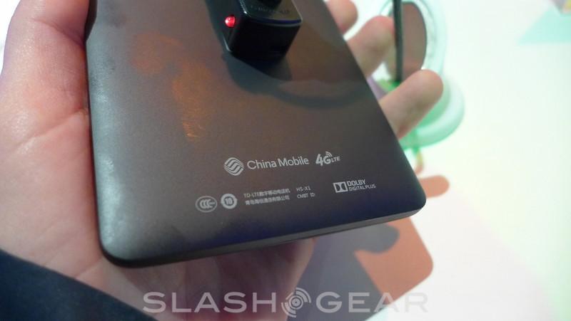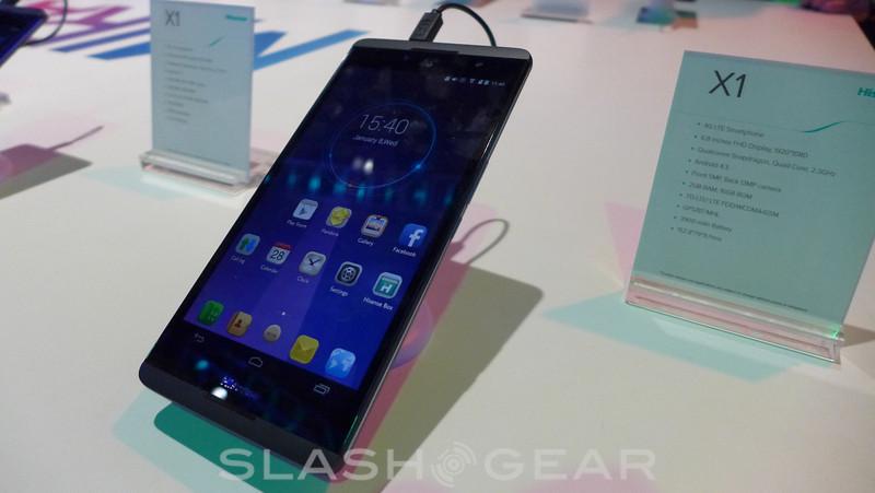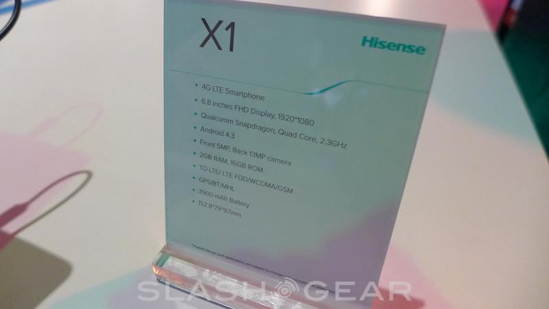 Rounding out the specs is a rather massive 3900 mAh battery, 5 megapixel front-facing camera and 13 megapixel rear-facing camera. To give some idea of the size of the phone — we included the image showing a hand sitting on top of the display. To be a bit more specific here, the X1 measures in a 152.8 x 79 x 9.7mm. This is also a 4G LTE device, but for now the handset is running on China Mobile. There was some mention of Hisense releasing this for the US market, but so far a firm timeline and pricing remains a mystery.