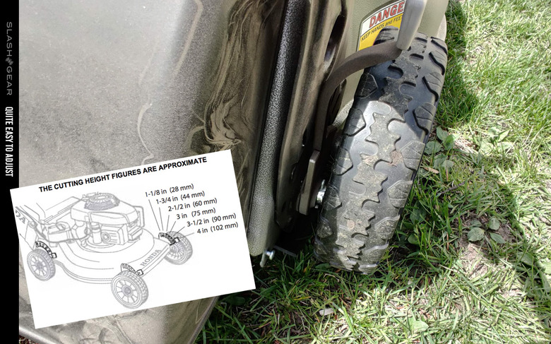 This mower was 60.4-inches long and 23-inches wide, with an overall height of 39.9-inches. This mower had a super simple adjustable mow height system, with options between 1-1/8 to approximately 4-inches.