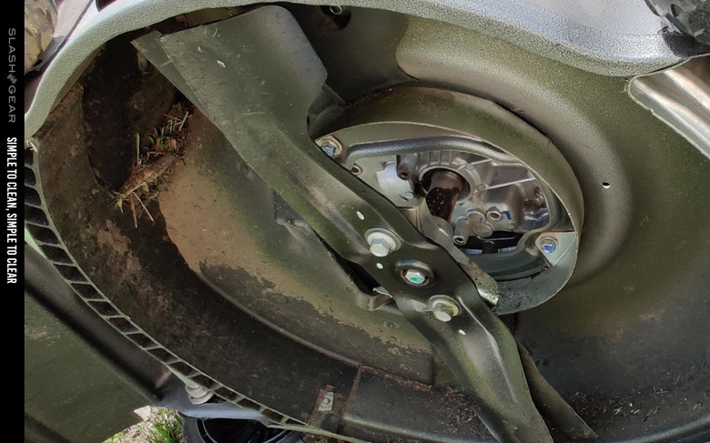 The vast majority of the time I used this mower, it was set to mulch. Switching between mulch and bag was as simple as a squeeze and a switch. Cleaning this mower was as simple as lifting up the front end and brushing out any stuck grass, then pushing open the door at the back to get the rest.