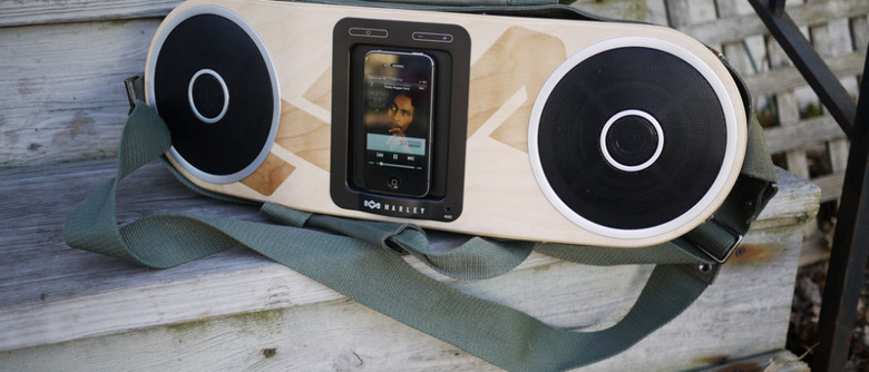 This month we've gotten the opportunity take a peek at the House of Marley Bag of Rhythm, a massive carry-along amplifier for your iPhone and/or any other device with a headphone jack. The idea here is that you carry this beast along with you wherever you want to go jamming, and turn the twin 1-inch tweeters and 4.5-inch high-definition woofers out on the world to bring sunshine and positivity to your friendly neighbors. What you'll get is an aesthetically (and acoustically) lovely unique piece of equipment that'll fit any one of your iPods just perfectly.
