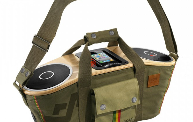 If you attended CES 2012, you very well may have happened upon this delightful device being carried around by members of the House of Marley: the Bag of Rhythm. This harvest-colored beast is essentially a boom box that works natively with your iPod Touch and iPhone, has an Aux input to connect to essentially any other small media device, and strings over your shoulder to blast beats right up into the atmosphere. This sack and wood-housed set of speakers has the look and materials of a modern day block rocker – and it's officially on sale today!