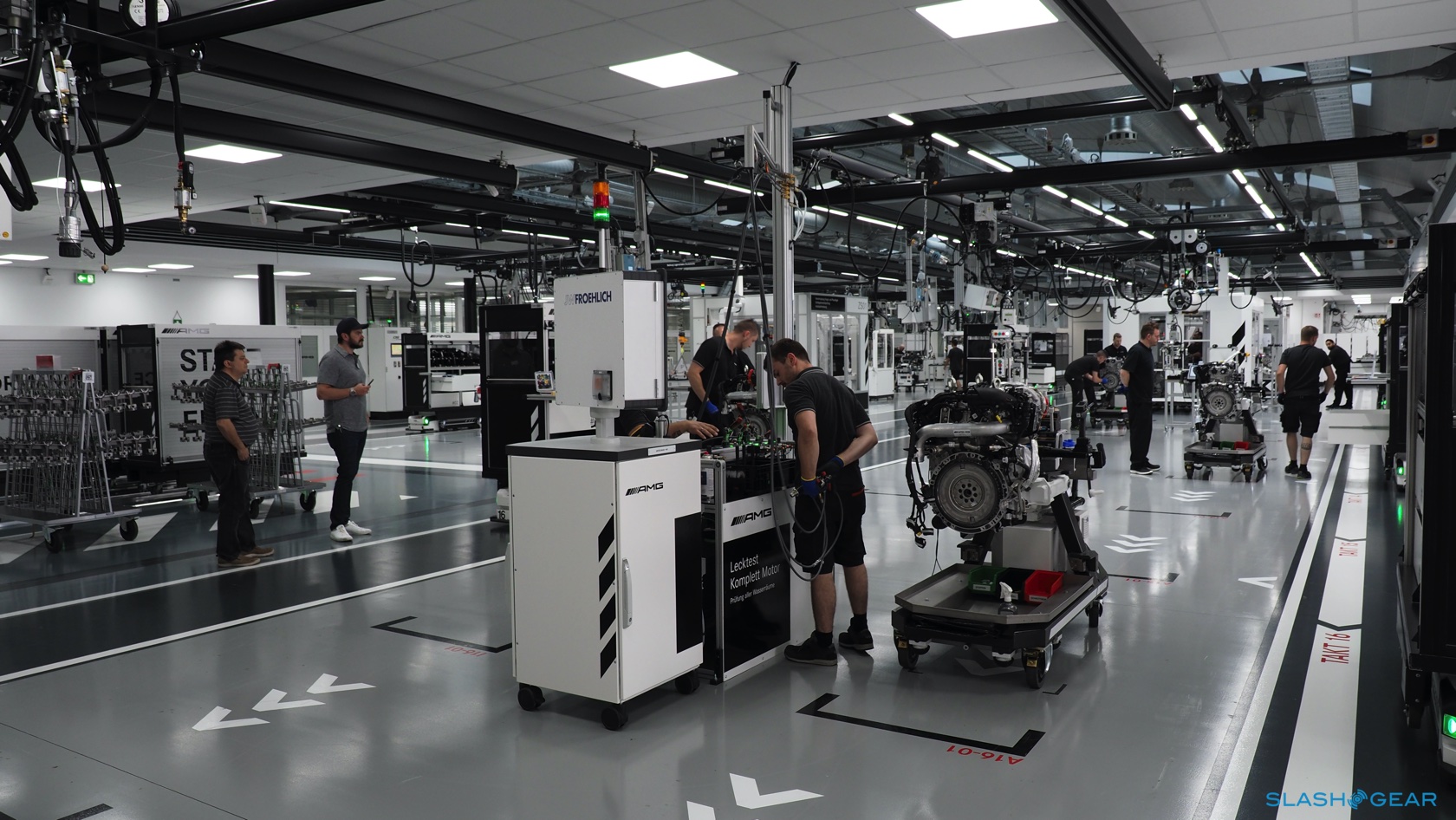 The most powerful four-cylinder engine in the world is no mass-produced motor. Each engine is still built by hand in accordance with AMG's tradition of the 'one man, one engine' method. However, Mercedes established a more streamlined approach in engine building using the latest in modern technology. Each person on the line makes use of special power tools that electronically record the torque applied to each fixture and the assembly sequence. Mercedes claims this new approach allows the AMG manufacturing facility to churn out 140 engines each day in two alternating shifts. It also reduces production time by 20- to 25-percent.