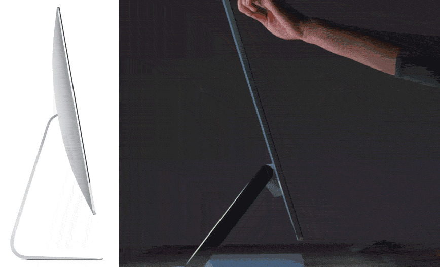 With a "Zero Gravity Hinge" the user will be able to move the height of the display and angle up and down with ease. The weight of this PC is 21.07 lbs max (9.56 kg) – we'll have to assume for now that most of the weight is in the base. Angles at which the user can work and holding tight when the time comes will be important. The iMac doesn't move like that.