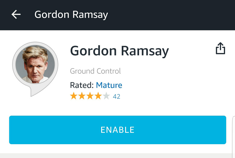 Tap "Enable" to install the Alexa skill. Once installed, you can pull it up on your Alexa-enabled device (such as an Echo Dot) by saying, "Alexa, open Gordon Ramsay." You'll be greeted by his familiar, if not loud and uncomfortable, voice.