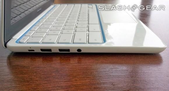 Along the left side of the Chromebook 11 are two USB 2.0 ports, a SlimPort video out, and the microUSB charging slot. Connectivity comes in the form of both Bluetooth 4.0 and dual-band 802.11 a/b/g/n, while the battery is a 30Wh offering and the mobile broadband model has a SIM card slot on the right side.