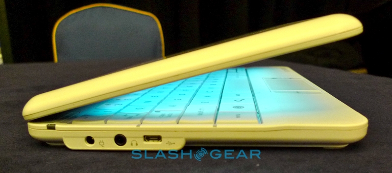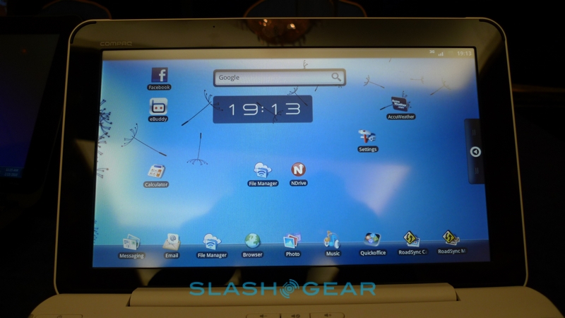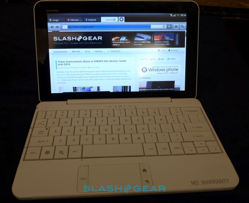 First thing we headed for at MobileFocus 2010 today was HP's first smartbook, the Compaq Airlife 100. In the plastic it resembles little more than a particularly slim netbook, though of course there are some significant differences; the OS is Android 1.6 Cupcake, complete with a resistive touchscreen, and the keyboard has been reworked to suit Google's platform. Keeping the whole thing moving is Qualcomm's 1GHz Snapdragon processor.