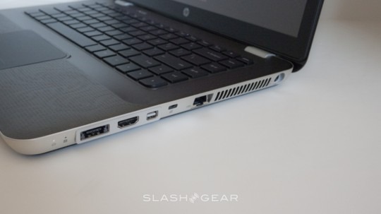 As a package, we're impressed by the ENVY 14. Apple's machine undoubtedly offers more battery longevity, but the HP throws in a broader selection of ports and for a lower price. The etched alloy case might not to be everybody's taste, but it's extremely well built and, in the metal, looks far more impressive than in stock photos. While it's a little thicker than the MacBook Pro – 1.1-inches versus 0.9-inches – it's also lighter, at 5.25lbs versus 5.6lbs from Cupertino.