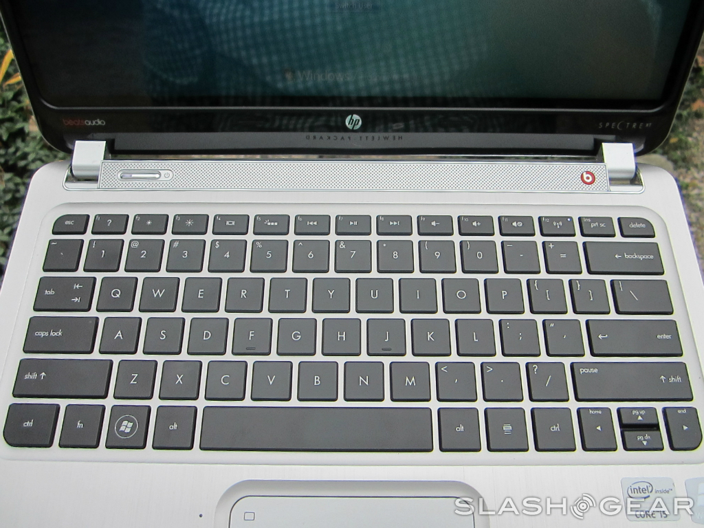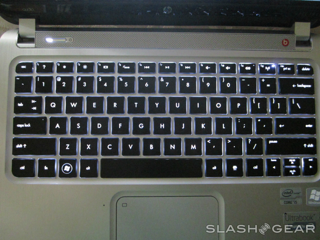 If there's one thing I have the overwhelming urge to rave about, it's the keyboard. You've got the same chiclet style keys that are found on most notebooks these days, but they offer a satisfying sound when you're typing up a storm. If I had an HP representative next to me right now, I'd kiss them for not skimping on the size of the keys either. One thing that drives me nuts with a lot of ultrabook keyboards is that the enter, shift, and backspace keys are usually reduced in size. Not this time around – you've got a full-sized enter key, so you don't have to look at the keyboard every time you want to hit it. It may seem like a small feature, but to those who use a computer all day, it will be a big plus.
