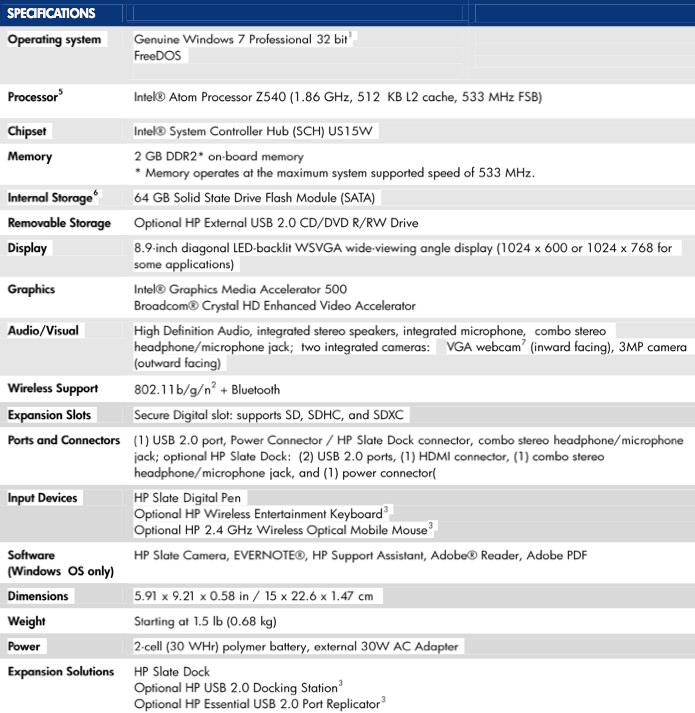 The new HP Slate 500 Tablet PC is designed specifically for business, enterprise and vertical customers looking for the mobility of a tablet, the familiarity of Microsoft Windows 7 and the ability to run custom or corporate applications.With a starting weight of only 1.5 lb (0.68 kg), the HP Slate 500 Tablet PC sets a new standard for mobile productivity with a an ultra-thin, sleek form-factor that enables businesses such as retail, healthcare, insurance, education and hospitality to be more intuitive and work efficiently while on the go. The ability to easily incorporate custom business applications differentiates this product and ultimately enhances the user experience and saves time for HP's business and enterprise customers.