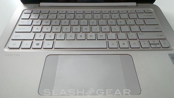 Internally, the keyboard and trackpad have an equally premium feel. The keyboard almost identically mimics the MacBook's, begging even more comparison. The keys are spaced the same, laid out the same, and have much the same shape. The trackpad is unique to the Spectre, with its "Control Zone" feature that we'll get into shortly. For now, we'll say it was one of the nicer trackpads we've tested, but had a little more give than we would have liked. Overall, it's still a winner.