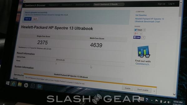 When looking at a list of specs, it's easy to want more. The Intel Core i5 on the base Spectre may not be an i7, but it is Haswell. In addition to keeping the device humming along nicely, it has benefits for your battery life, does Haswell. When it comes to plain and simple CPU performance, though, we found nothing lacking with the base Spectre 13.