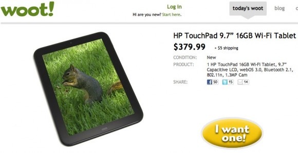 Woot's deal – if you can get in while the company still has stock – beats even that, and while you'll need to factor in $5 shipping, it's still a lot of tablet for $384.99. Although first-impressions of the TouchPad were mixed, the recent webOS 3.0.2 update has reportedly made a significant difference to usability.