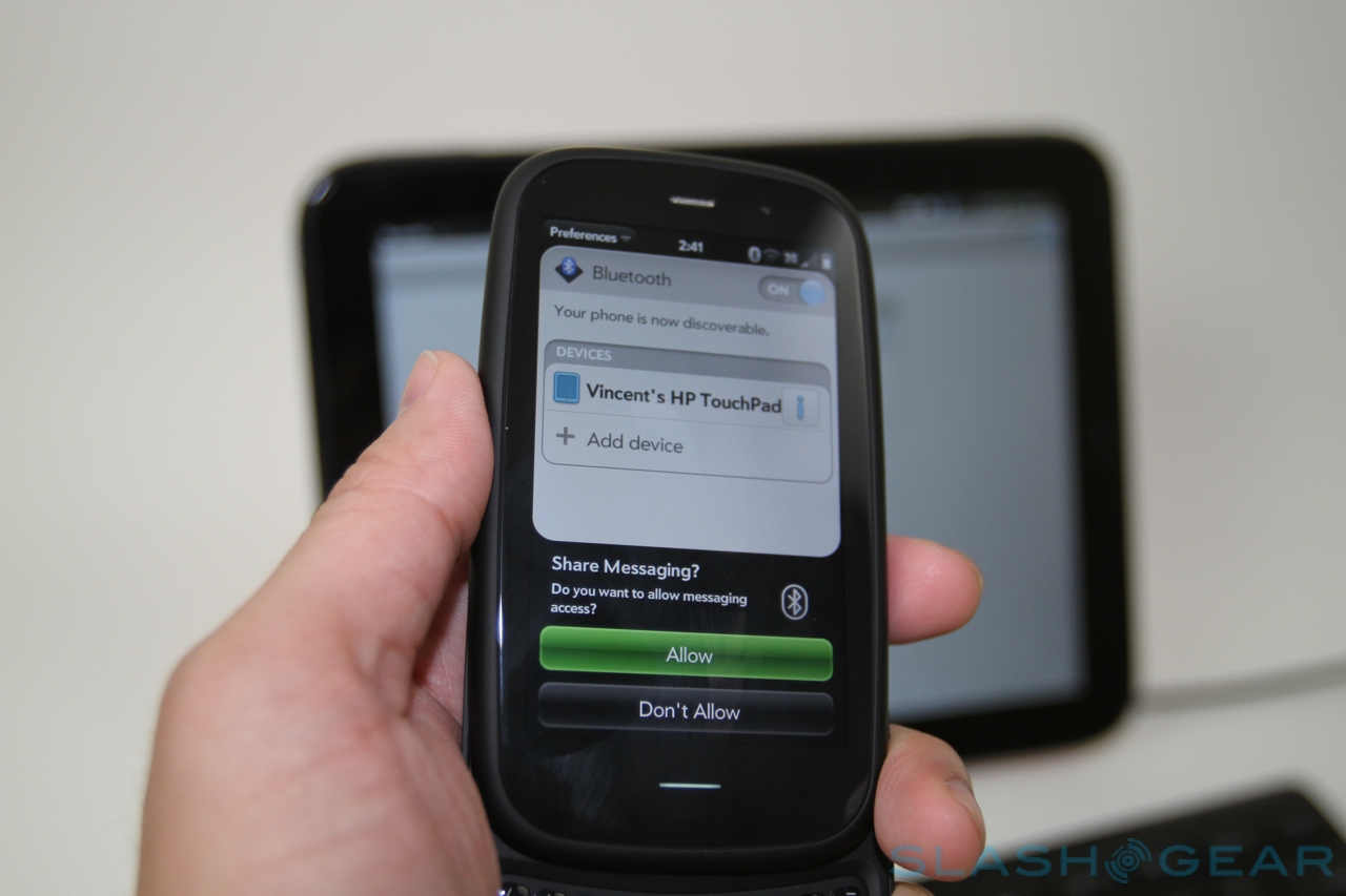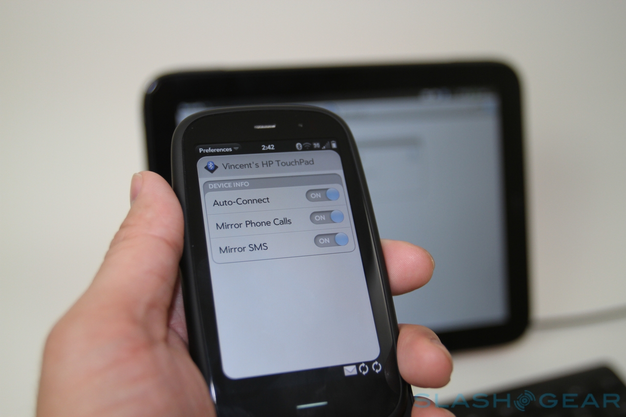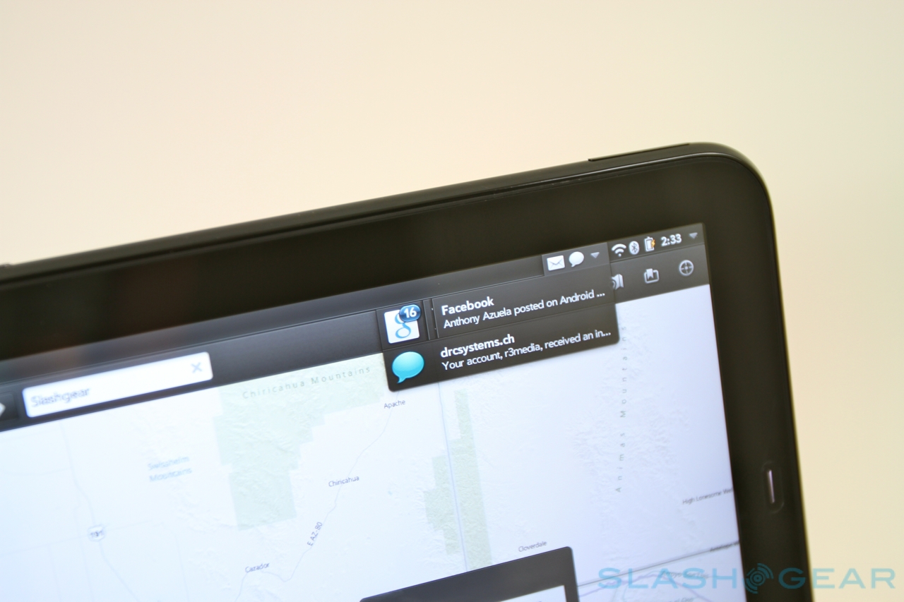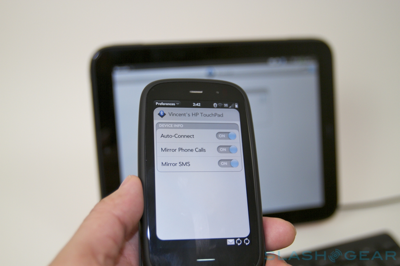 There may be no wireless HDMI or NFC, but HP has been experimenting with Bluetooth for its Touch to Share feature. Hold a webOS 3.0 phone – such as a Pre3 – near the TouchPad's home button, and an open webpage on the handset will automatically open up on the tablet, too. It works in reverse as well, useful if you want to continue reading a page on your phone when you're leaving the house.