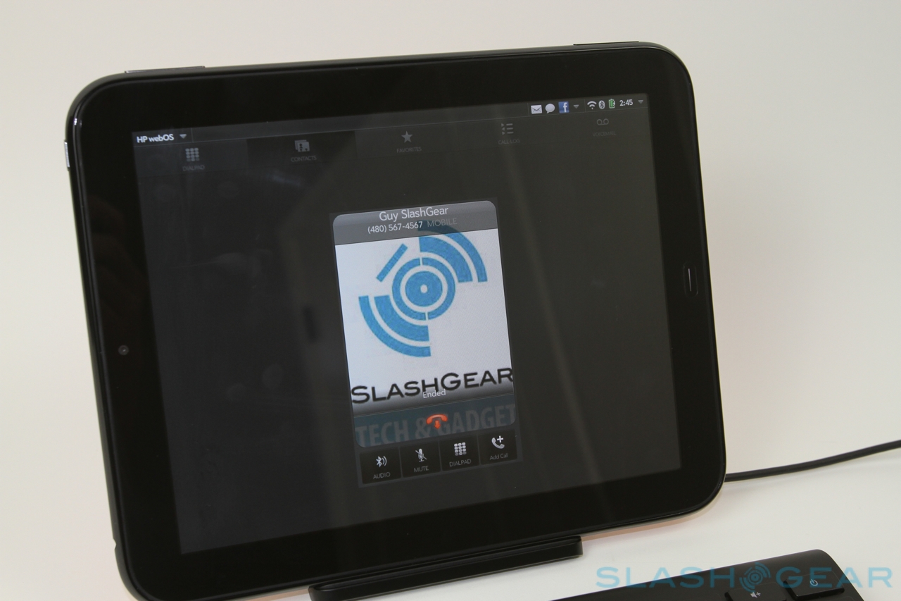HP has opted for Qualcomm's 1.2GHz dual-core Snapdragon APQ8060, the non-3G version of the chip found inside the HTC Sensation. That makes it – on paper at least – faster than the Apple A5 based iPad 2 and the various Tegra 2 powered Android Honeycomb tablets, with their 1GHz clock speeds. Qualcomm's selling point for its chip is the asynchronous cores, which can be run at different speeds depending on the demands of the system. That means, so the engineers insist, that power consumption is reduced, since one core can be partially active rather than the all-or-nothing of rival processors.