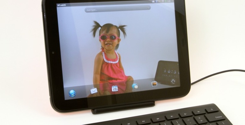 The display itself is a 9.7-inch LCD IPS panel with LED backlighting, matching the iPad's 4:3 aspect ratio and 1024 x 768 resolution. The capacitive touch recognizes multitouch gestures and apparently has a toughened coating for easier cleaning, though it's not a Gorilla Glass panel as Samsung uses on its tablets. As you'd expect from an IPS panel, the viewing angles are broad no matter whether you have the TouchPad in portrait or landscape orientation, though we did find the colors were a little more yellow than the purer whites on the iPad 2. Still, it's a bright and usable display.
