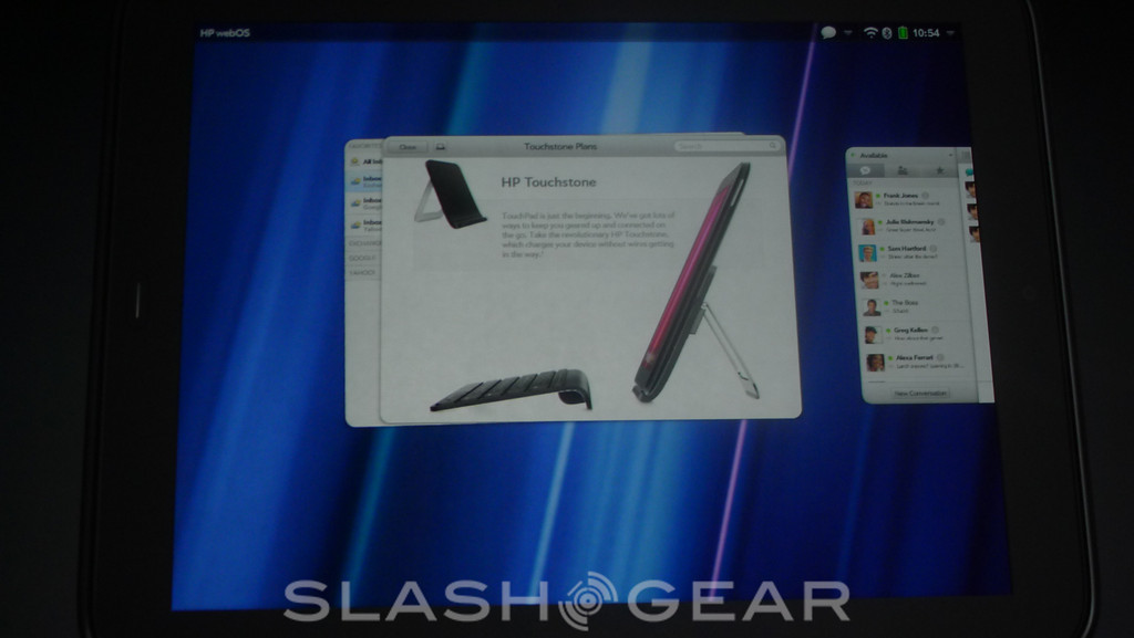 Exciting stuff, and we're very interested to see HP build on webOS' obvious multitasking strengths with a full ecosystem. The WiFi b/g/n HP TouchPad will go on sale in summer 2011, pricing tba, and be followed by 3G/4G versions later in the year.