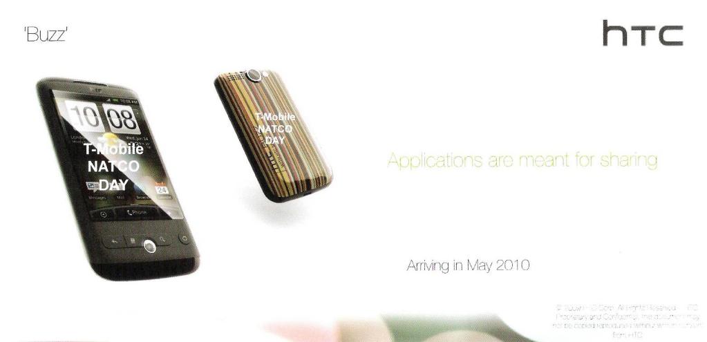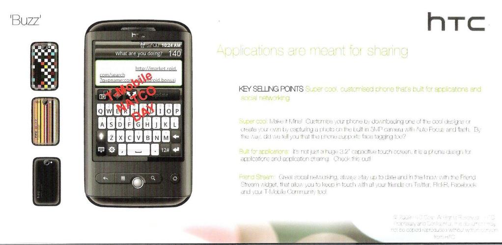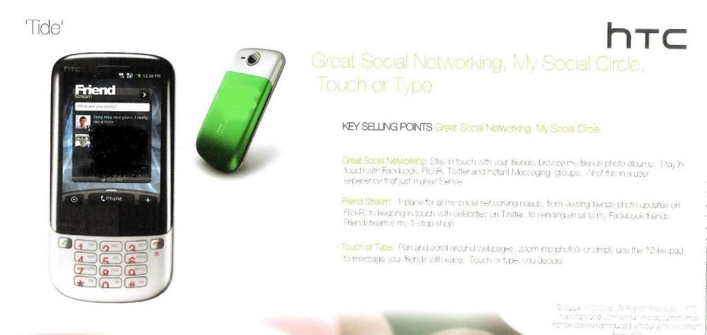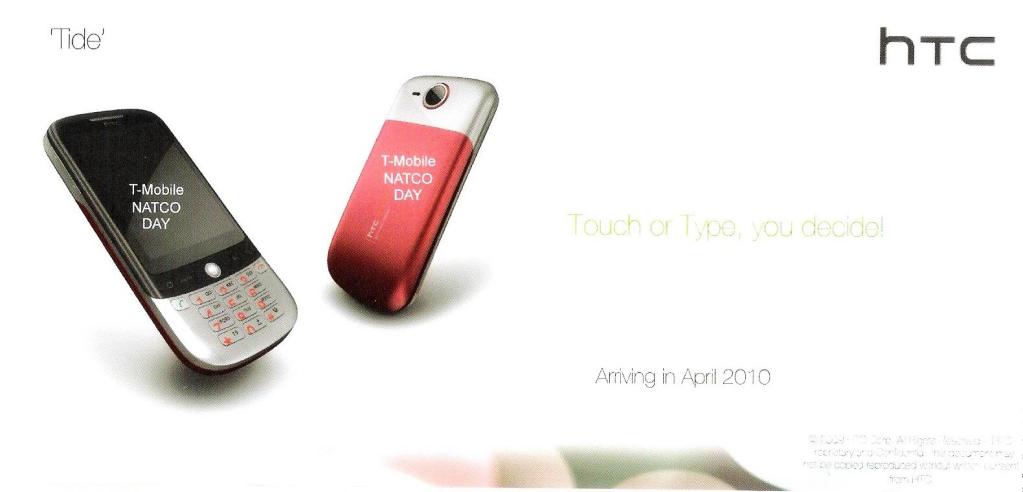 The HTC Tide will arrive in April 2010, and look more like a traditional cellphone with a touchscreen above a regular numeric keypad; meanwhile the HTC Buzz uses replaceable covers, similar to the HTC Tattoo, but in a larger device with a 3.2-inch display and 5-megapixel camera. The Tide and Buzz will arrive in April and May 2010, respectively.